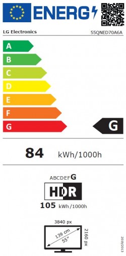 55" (139 cm) úhlopříčka • 4K Ultra HD Smart TV • 3840 × 2160 px rozlišení • DVB-C/S2/T/T2 • kodek HEVC (H.265) • QNED • Direct LED podsvícení • HbbTV • HDR/HDR10/HLG • PVR • 3× HDMI • 1× USB • operační systém WebOS • AirPlay • Bluetooth • Chromecast • Miracast • Wi-Fi • zrcadlení obrazu • LAN • Netflix • YouTube • chytrý ovladač v balení • VESA 300 × 200