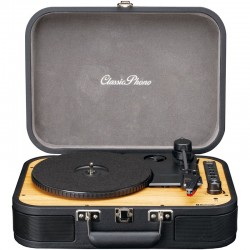 Vychutnejte si poslech své oblíbené hudby se stylovým přehrávačem gramodesek CLASSIC PHONO TT-116BK. Tento praktický retro kufříkový gramofon nepřehrává pouze vaše vinylové desky. Umožňuje vám streamování vaší oblíbené skladby do vestavěných reproduktorů pomocí telefonu nebo tabletu. Přehrávanou hudbu je navíc možné nahrávat přímo na USB.
