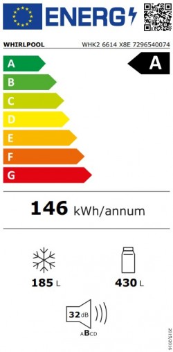 Chladnička komb. Whirlpool WHK2 6614 X8E, NoFrost