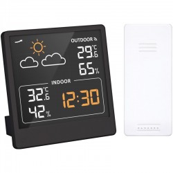 Měření vnitřní teploty od -9,9°C do +50°C a venkovní teploty od -40°C do +70°C. Měření vlhkosti (20% až 95%) pro vnitřní i venkovní prostředí. Ukládání maximálních a minimálních hodnot teploty a vlhkosti, zobrazení trendu změny tlaku a předpověď počasí na základě změn tlaku. Možnost volby jednotek teploty °C/°F. Napájení: hlavní jednotka 2× AAA baterie nebo DC5V / 2A, senzor 2× AAA baterie (není součástí balení). Barva: černá.