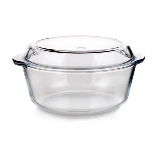Kulatý pekáč s víkem 3 l z varného skla, varné sklo patří mezi žádané materiály v moderní kuchyni, v nabídce jsou různé tvary a velikosti pekáčů.