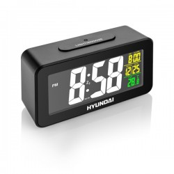 Typ: budík Zobrazování času: digitální Tvar: hranaté Průměr hodin – největší rozměr (cm): 13.5 Barva: černá Řízení / nastavení času: rádiovým signálem DCF Tichý chod: ANO Ostatní parametry: buzení; datum; zobrazení teploty Druh buzení : buzení tónem Opakované buzení: ANO Podpora nabíjení mobilního telefonu: NE Qi bezdrátové nabíjení: NE Projekce na zeď: NE USB : NE Bluetooth: NE Operační systém – aplikace: Nemá Napájení: baterie AAA; síťové Tuner: bez tuneru Provedení výrobku: černá barva <b>Praktik pro každého</b> Budík Hyundai AC322B se rychle stane nedílnou součástí vašeho nočního stolku. Na velkém a přehledném <b>LCD displeji</b> snadno zjistíte aktuální čas. Ten je řízen <b>rádiovým signálem</b> DCF 77. Zobrazení času lze volit v režimu 12/24. Přístroj dále zobrazuje datum a aktuální <b>vnitřní teplotu</b>. Tu lze měřit v rozmezí -10° až +50° C. Budík disponuje oblíbenou funkcí SNOOZE. Napájet budík lze jak z elektrické sítě pomocí adaptéru nebo mikrotužkovými bateriemi. LCD displej Čas řízen rádiovým signálem DCF 77 Volitelné zobrazení času v režimu 12/24 hodin Datum Funkce budíku Opakované buzení SNOOZE Vnitřní teplota Měřitelný rozsah teploty od -10°C do +50°C Napájení: adaptérem nebo bateriemi 3 x 1,5 V / AAA (baterie nejsou součástí balení) Rozměry výrobku: Hmotnost (kg): 0.230 Výška (cm): 8.00 Šířka (cm): 14.00 Hloubka (cm): 6.00 Rozměry balení: Hmotnost (kg): 0.325 Výška (cm): 6.50 Šířka (cm): 23.40 Hloubka (cm): 13.70 EAN: 8592417060972 Záruční doba: 24 měsíců Budík, měření vnitřní teploty, čas řízen rádiovým signálem, SNOOZE, napájení AAA bateriemi