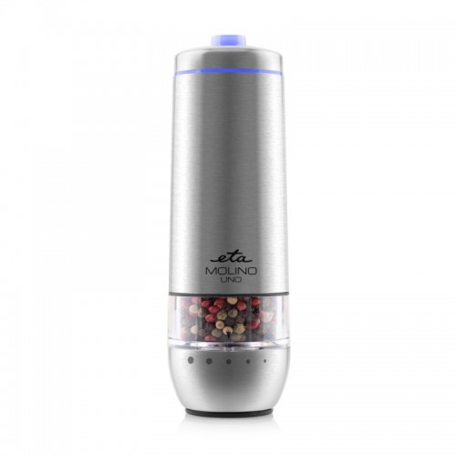 Typ: elektrický Materiál mlýnku: nerez Sada: NE Provedení výrobku: nerez <p><strong>Dodejte svým pokrmům špetku dokonalosti!</strong> </p><p> S elektrickým mlýnkem na sůl ETA Molino Uno budete mít vždy čerstvě namletou sůl pro dokonalé dochucení. Díky elektrickému pohonu stačí jediné stisknutí a čerstvě namletá sůl je na talíři. Nastavitelná hrubost mletí, keramický mlecí mechanismus a elegantní nerezové provedení dělají z mlýnku nejen praktického, ale i stylového pomocníka do každé kuchyně.</p><p> Transparentní zásobník vám dá přehled o množství soli, světelná signalizace vás upozorní na provoz a díky USB-C dobíjení už nikdy nebudete řešit baterie. Vaření bude jednodušší, rychlejší a chutnější!</p><p> </p><p> </p> Elektrický mlýnek na sůl Praktický pomocník při dochucování jídel Pohodlné použití díky elektrickému pohonu Nastavitelná hrubost mletí Keramický mlecí mechanismus Nerezové provedení Transparentní zásobník Světelná signalizace provozu Dobijení přes USB-C kabel (součástí balení) Akumulátor 3,7 V Li-ion Rozměry výrobku: Hmotnost (kg): 0.350 Výška (cm): 19.00 Šířka (cm): 6.00 Hloubka (cm): 6.00 Rozměry balení: Hmotnost (kg): 0.435 Výška (cm): 8.00 Šířka (cm): 8.00 Hloubka (cm): 20.00 EAN: 8590393405763 Záruční doba: 24 měsíců Elektrický mlýnek na sůl s keramickým mlecím mechanismem a USB-C dobíjením. Nastavitelná hrubost mletí je samozřejmostí.
