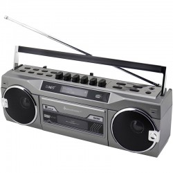 radiomagnetofon • kazetový přehrávač • slot pro karty • USB • digitální DAB+/FM tuner • Bluetooth • výkon 3 W • sluchátkový výstup • LCD displej • hodiny • budík